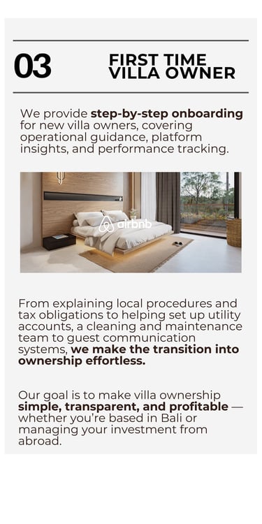 European standards with Bali expertise, with 8 years of experience in Airbnb.